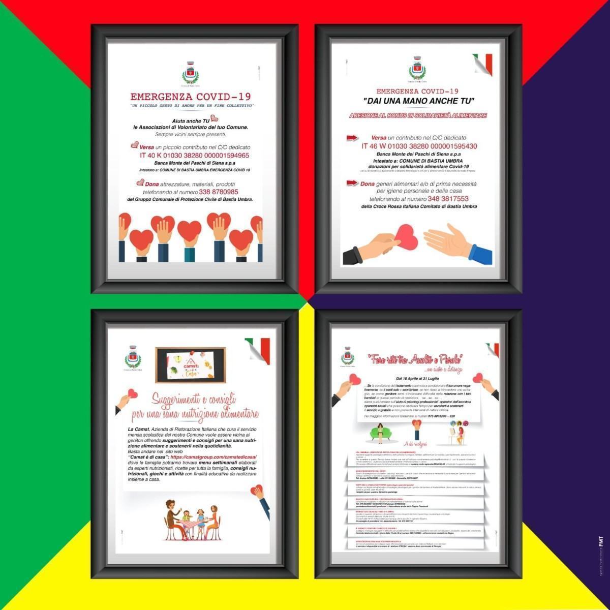 – Per le donazioni per solidarietà alimentare Covid-19 C/C dedicato IT 46 W01030 38280 000001595430 sempre Banca Monte dei Paschi di Siena spa, intestato a Comune di Bastia Umbra donazioni per solidarietà alimentare Covid-19, un aiuto per incrementare il fondo a disposizione per i buoni spesa, tante sono le domande di chi ha bisogno.