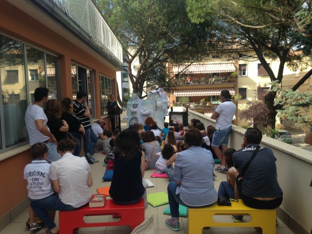 Si terrà Sabato 18 giugno 2016, alle ore 17.30, lo Spettacolo di narrazione animata “CASA di NUVOLE”, con Sabina Antonelli e Maria Luisa Morici. Lo spettacolo (ad ingresso gratuito) si svolgerà nella locale Biblioteca Comunale, in Viale Umbria, 5, ed è rivolto ai bambini e ai loro genitori. In biblioteca, sul terrazzo, è stato allestito un set teatrale dove è stata illustrata una “Casa di Nuvole gigantesca” e attraverso le marionette hanno raccontato la storia, intervallata da canti, filastrocche, suoni e musica. La Casa di Nuvole è il libro di fiabe di Sabina Antonelli. Oggi, nella Biblioteca Comunale di Bastia Umbra, lo spettacolo di narrazione che Sabina Antonelli e Maria Luisa Morici hanno offerto ai tanti bambini e ai loro genitori intervenuti.