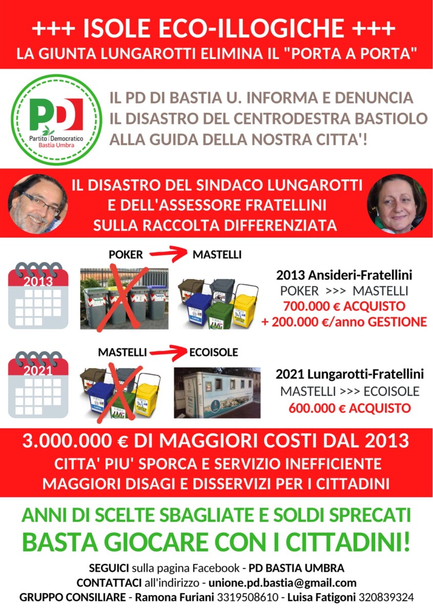 Ecoisole: PD Bastia chiede appuntamento con Sindaco e Vicesindaco