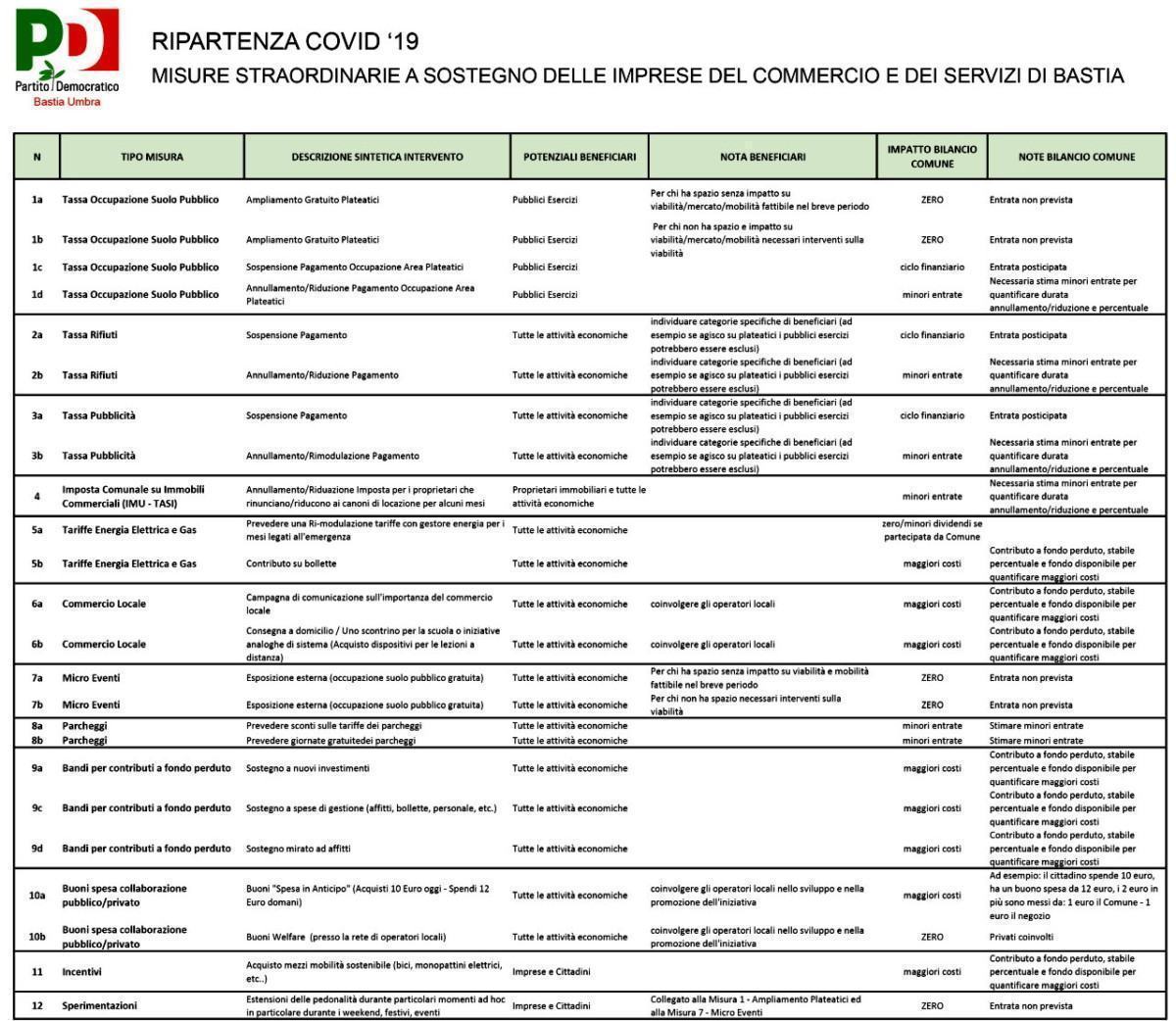 MISURE STRAORDINARIE DEL PD A SOSTEGNO DELLE IMPRESE DEL COMMERCIO E DEI SERVIZI DI BASTIA PER LA RIPARTENZA POST EMERGENZA COVID ‘19