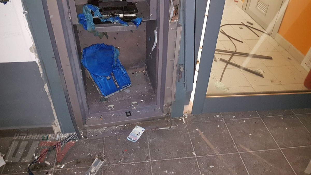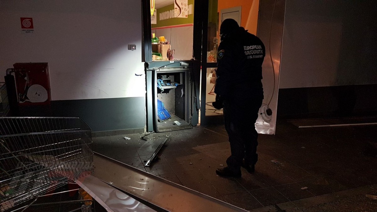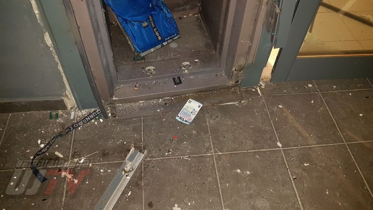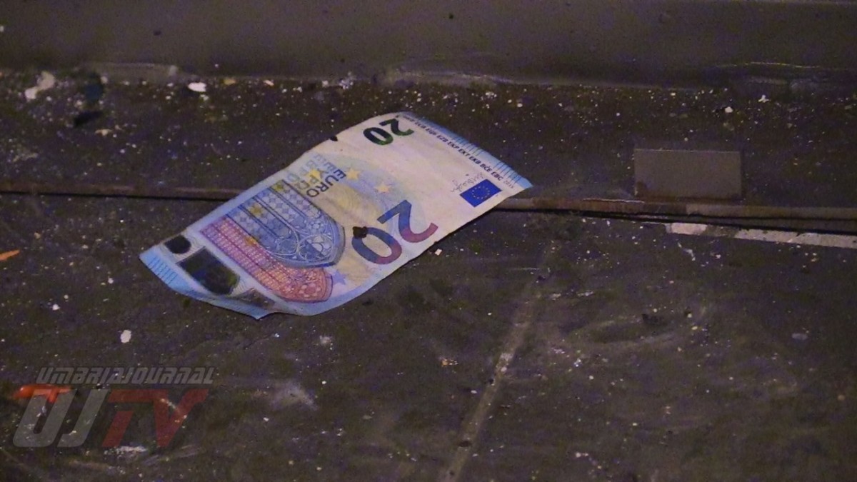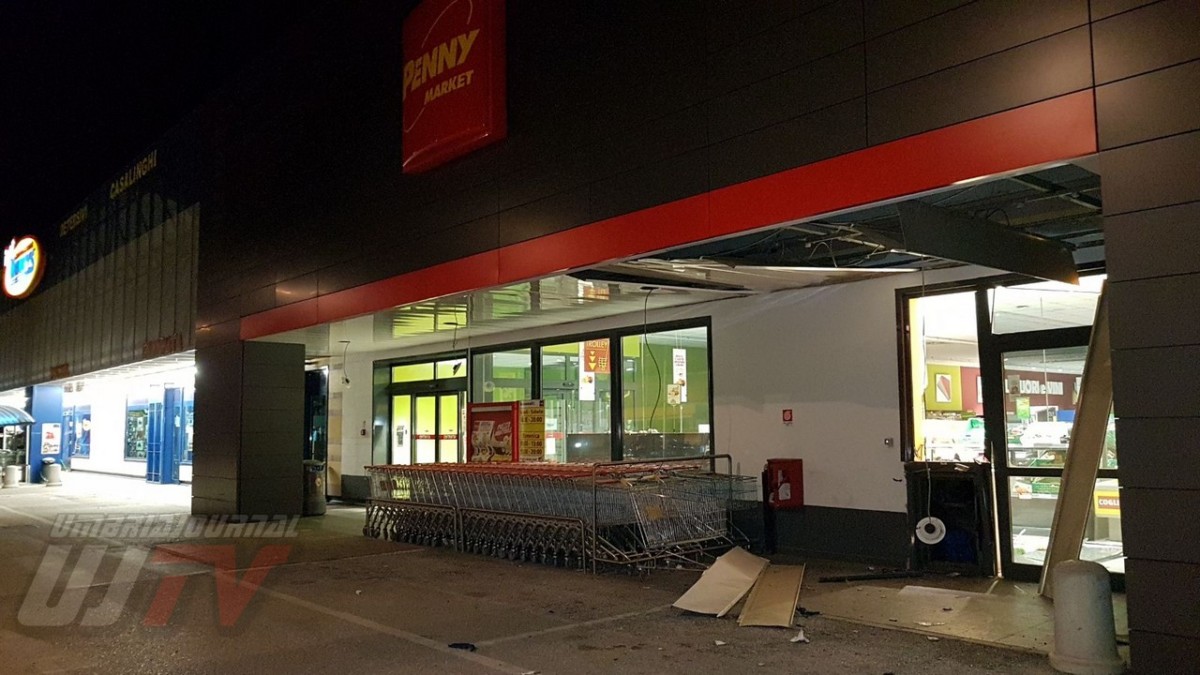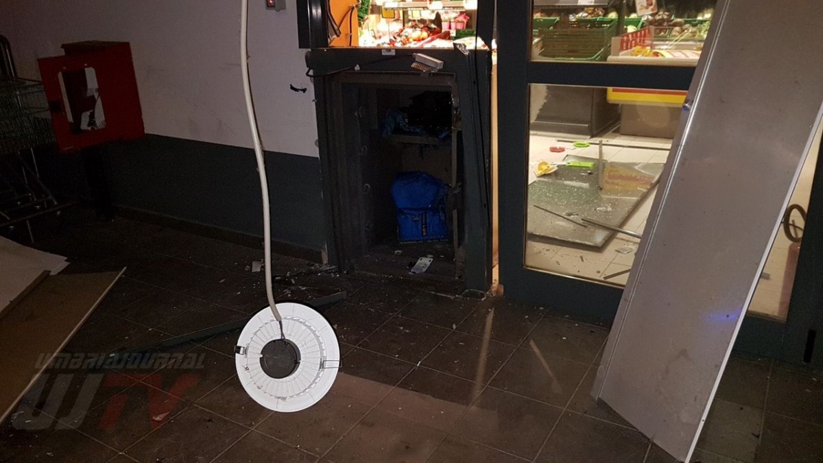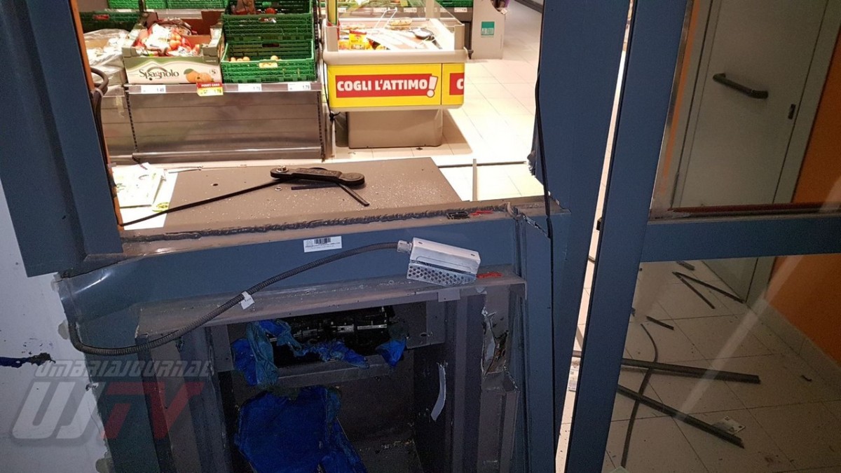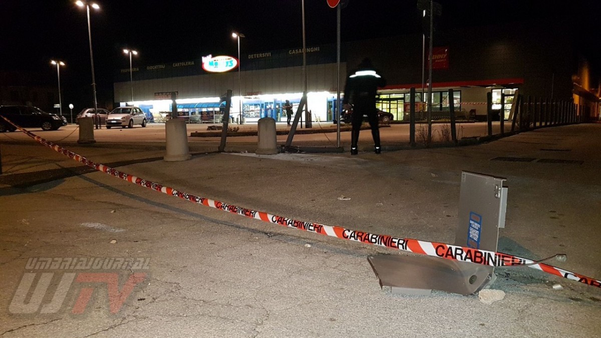 Una esplosione pazzesca che ha fatto saltare una parte del coperchio della cassa raggiungendo metà piazzale, a circa 50 metri di distanza. Un altro pezzo di lamiera è finito ancora più lontano quasi nella strada principale, il Viale del Popolo o statale 147 Assisana. Danni all’esterno del Penny, alcune lamiere si sono staccate. Distrutta anche una piccola parte all’interno del supermercato. Vetri e residui di lamiere un po’ ovunque. A terra anche banconote da 20 euro un po’ bruciate.