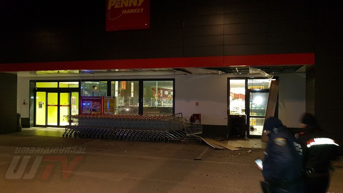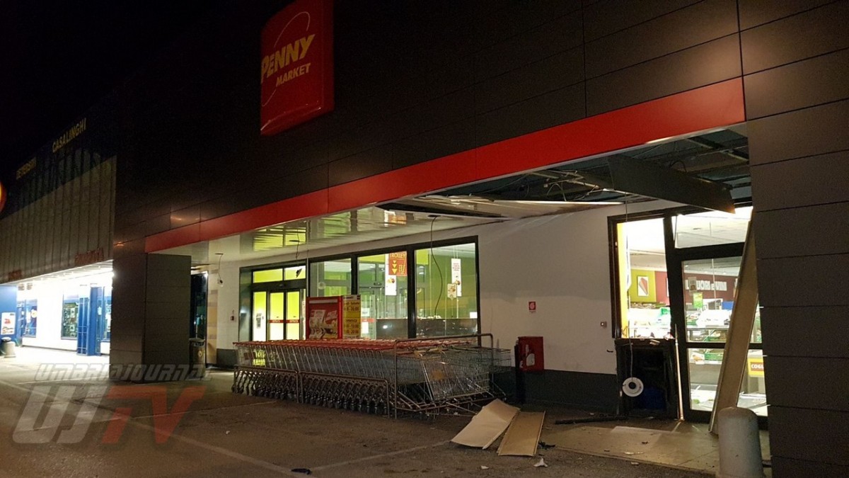 BASTIA UMBRA – Un botto pauroso ha svegliato mezza città nel cuore della notte. Ignoti, molto probabilmente tre persone, hanno fatto esplodere forse con gpl la cassa continua del Supermercato Penny Market di Bastiola di Bastia Umbra. E’ accaduto poco prima delle 2 del mattino di oggi. Hanno preso i soldi e sono scappati via.