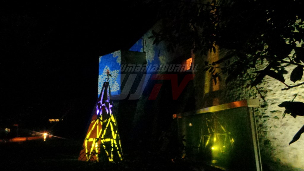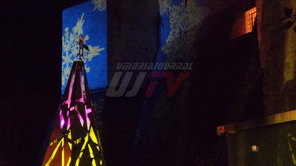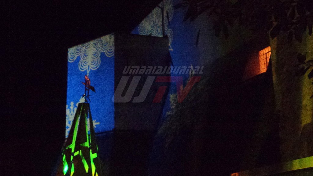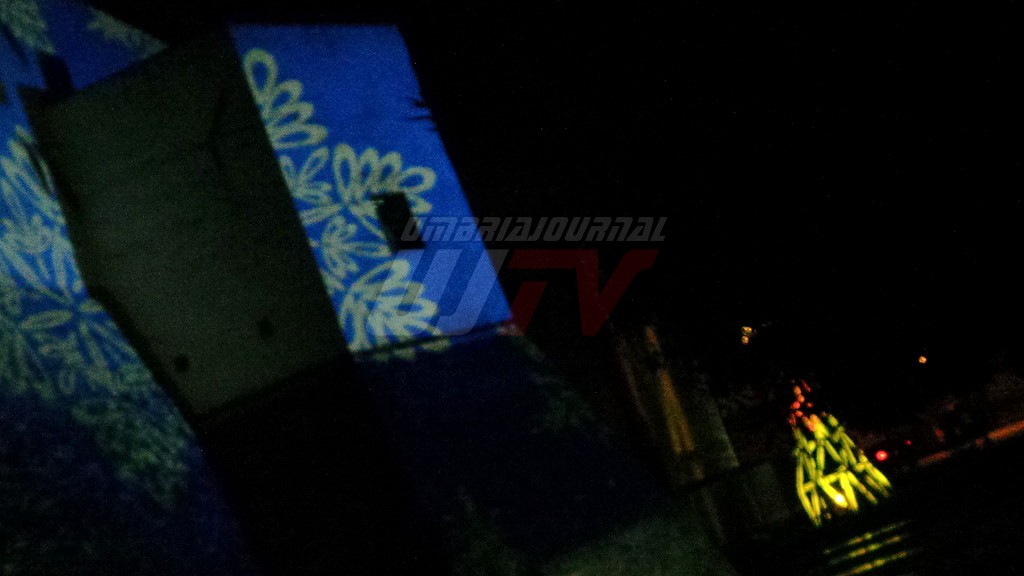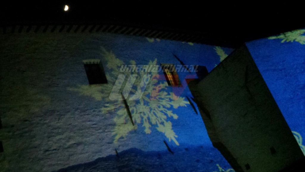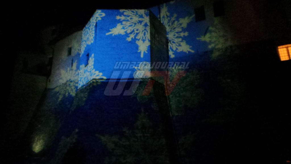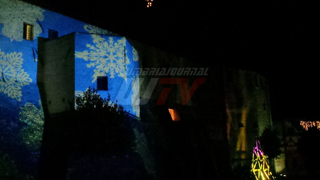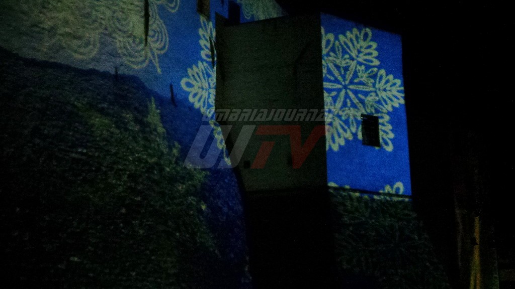 BASTIA UMBRA – Bastia Umbra, così come Assisi, ha adottato in questi giorni di feste la tecnica del video mapping sui monumenti. Pioggia di colori e neve sul monumento più bello della città: la Rocca Baglionesca. L’effetto della neve bianca che cade su uno sfondo azzurro si può vedere passeggiando lungo la via della Rocca a Bastia Umbra, nelle ore serali. Chiunque può ammirarla in questi giorni di festa.