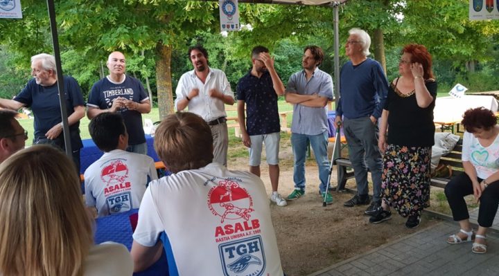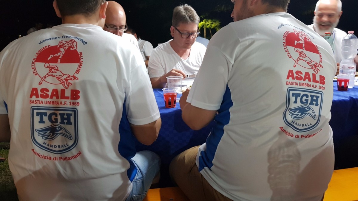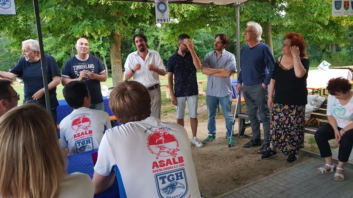 Pallamano Asalb gemellaggio tra le società di Bastia e TG Hochberg Bastia I comuni di Bastia Umbra e Hochberg, legati da un lungo e solido gemellaggio, aggiungono da ora un nuovo ed importante elemento di condivisione: l’Handball. Dal 31 maggio al 2 giugno si è infatti svolto a Bastia Umbra il primo incontro ufficiale tra le Società di Pallamano Asalb Bastia e TG Hochberg. Tra allenamenti, dimostrazioni e partite, il programma è stato fitto e realizzato grazie alla collaborazione dell’amministrazione comunale e del comitato gemellaggio, e alla partecipazione di AVIS Bastia Umbra.