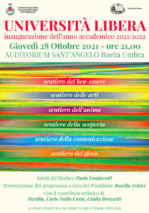 “È con grande soddisfazione – ha dichiarato la presidente Rosella Aristei a nome del direttivo – che si torna dopo quasi due anni ai nostri piccoli e grandi eventi che segnano la storia, la vita, la società bastiola e anche umbra, contrassegnati da arte, teatro, pensiero, spiritualità, ma anche lingue straniere, computer, ballo, escursioni e persino giochi. Il tutto, soprattutto quest’anno, in un crogiolo volto solo al benessere totale della persona dopo il lockdown con la conseguente scelta di vivere anche esperienze all’aperto: la piccola Valnerina, ma anche il Bosco di San Francesco, il sacro Monte Subasio, l’Abbazia di Sassovivo.