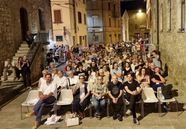 La serata si è conclusa con il lungo applauso e la richiesta del bis, che Chiara ha eseguito con piacere. Il sindaco di Bastia, Paola Lungarotti, ha omaggiato le artiste con le magliette con il logo di Bastia Estate a Colori e il presidente di Impresa e Sviluppo per Bastia Umbra, Moreno Ricci, ha offerto alle artiste un mazzo di fiori. Il Primo cittadino durante il suo intervento ha ricordato: “Il progetto di Migliosi era arrivato sulla scrivania del comune di Bastia da prima della pandemia. Eravamo pronti a realizzarlo con altre artiste nel luglio 2020, ma poi le norme anticovid hanno bloccato tutto. Oggi – conclude Lungarotti – è un sogno che si realizza”. E, fra le artiste che erano entrate nel programma, c’erano nomi come Teresa De Sio e Serena Brancale.