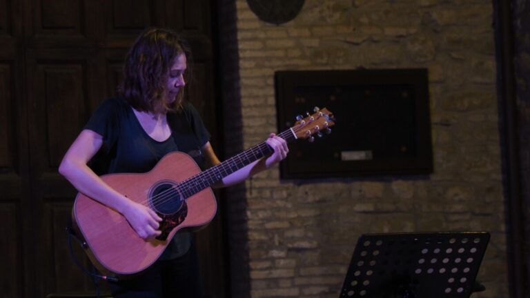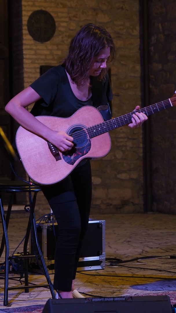 Rachele Fogu, che di anni ne ha appena 24 è all’ultimo anno del Conservatorio Morlacchi di Perugia, durante il concerto ha usato sia la chitarra acustica sia la chitarra elettrica semiacustica, arricchendo i brani con degli inserimenti fatti con “loop station”.