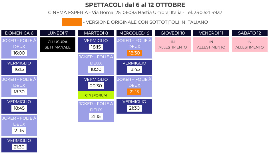 Cinema Esperia, da giovedì 3 a mercoledì 9 ottobre 2024