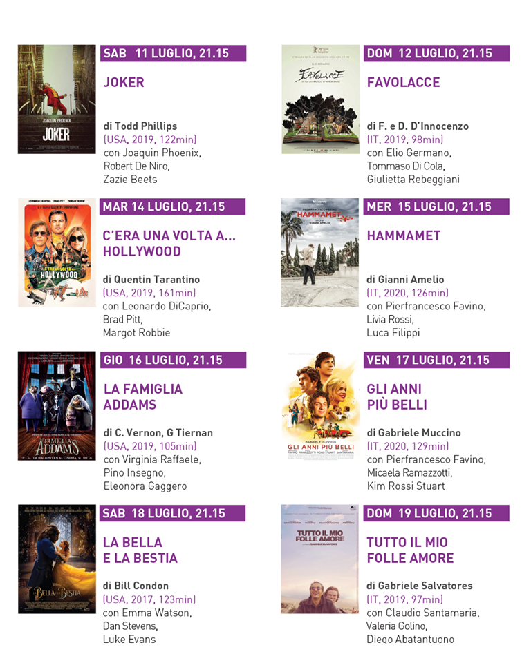 Da giovedì 2 luglio, aperto tutte le sere, ad eccezione del lunedì, il Cinelido ci attende con un film diverso ogni sera: dall’animazione per i più piccoli, ai grandi classici, alle ultime uscite.