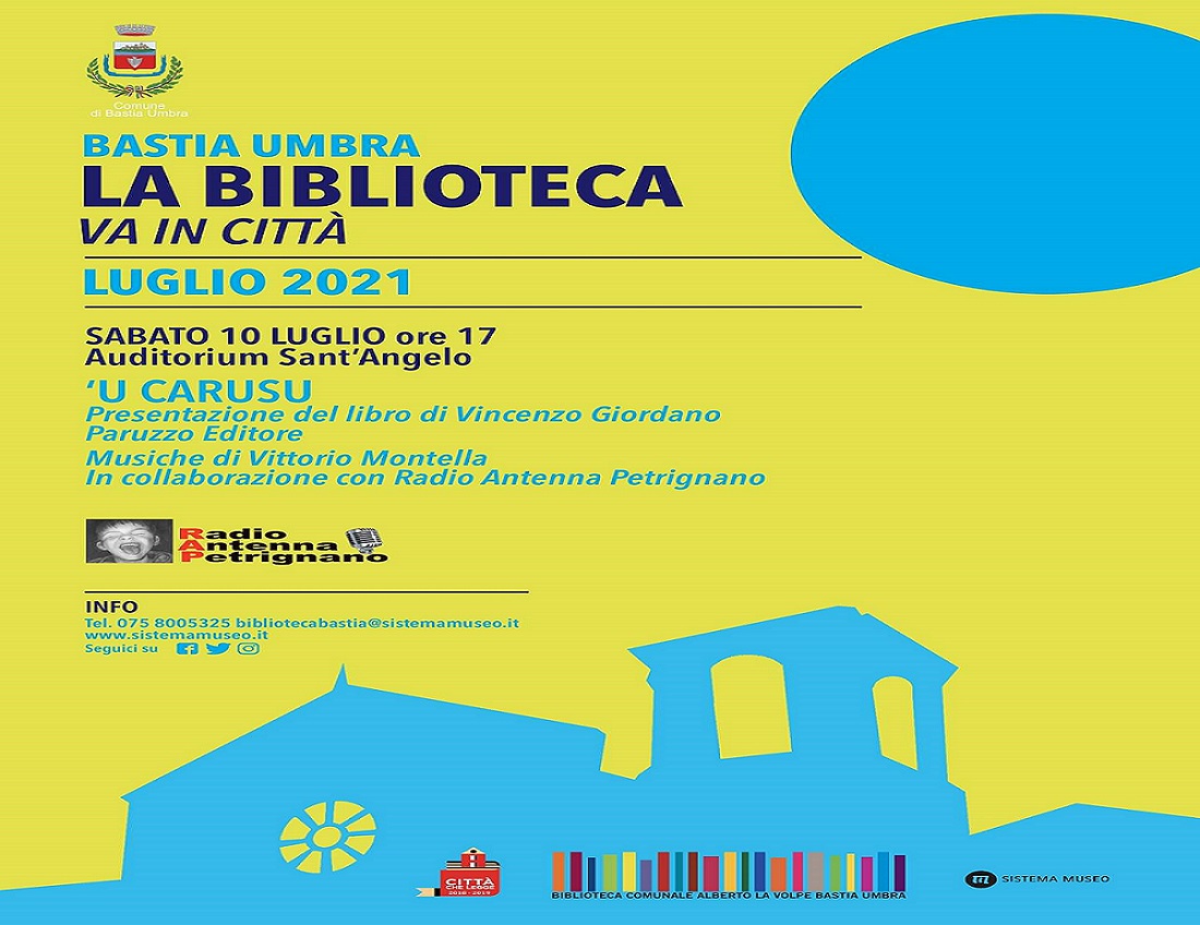 Il libro “U Caruso“, scritto da Vincenzo Giordano, sarà presentato sabato 10 luglio, alle ore 17,00 presso l’Auditorium Sant’Angelo a Bastia Umbra.