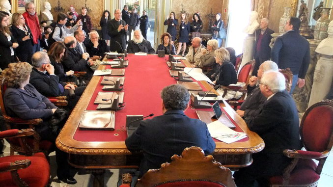 Nella seconda parte della mattinata c’è stata la presentazione de libro del Prof. Pippo Di Vita proprio nell’atrio del Palazzo delle Aquile ed è intervenuto anche Leoluca Orlando, sindaco di Palermo il quale ha ricevuto un dono inviatogli dal sindaco di Bastia Umbra, Stefano Ansideri, consegnato dalla Dirigente Scolastica Stefania Finauro, che ha dichiarato:” Attraverso questa esperienza abbiamo aiutato i ragazzi a tenere viva la memoria di chi ha sacrificato la propria vita per i valori in cui credeva, ma soprattutto abbiamo cercato di far sì che le loro giovani menti vivessero un’occasione unica Per iniziare a ragionare, ad orientarsi, a comprendere in prima persona cosa realmente significhi legalità. “