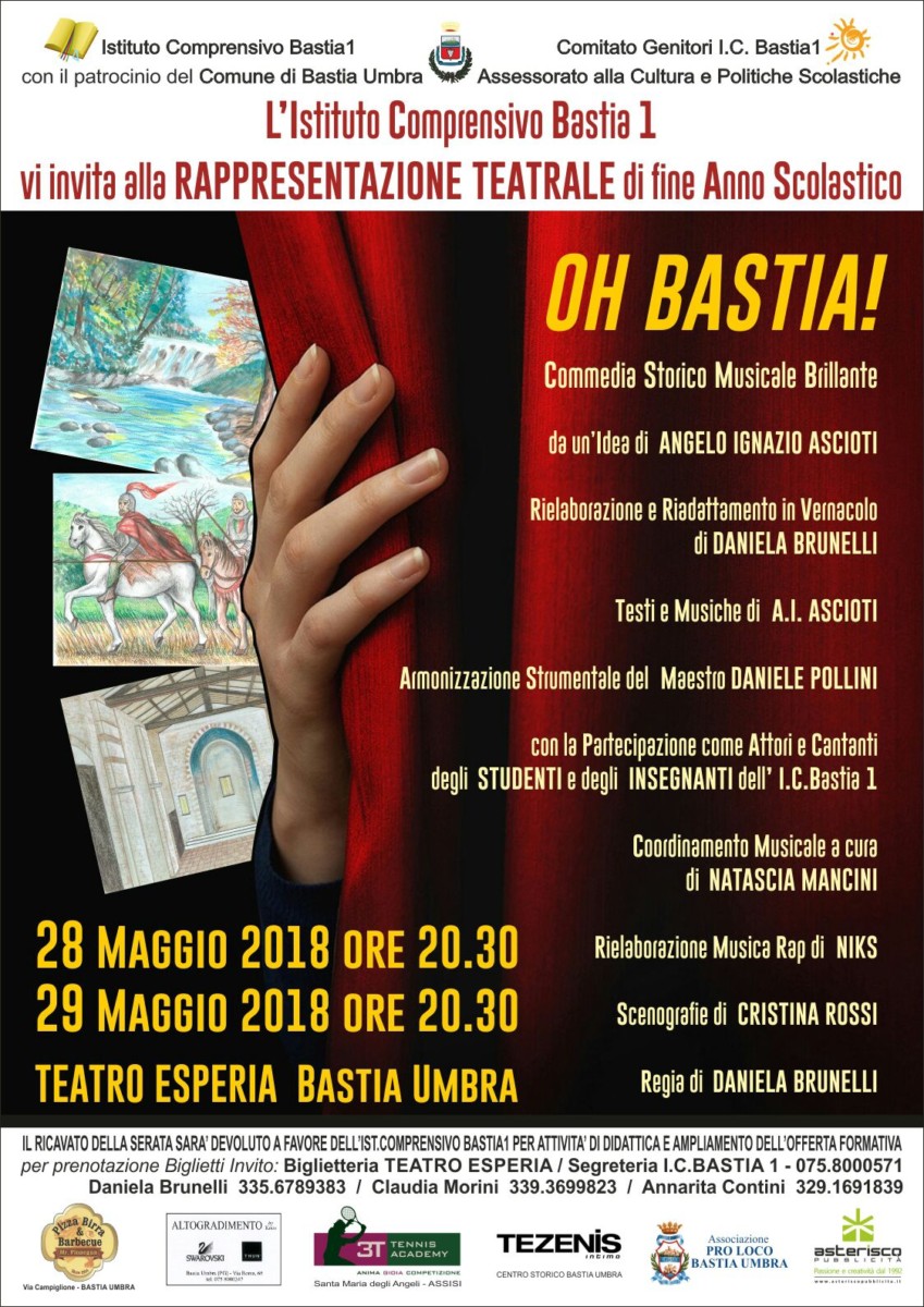 Il 28 e il 29 maggio l’Istituto Comprensivo Bastia1 con il patrocinio del Comune, Assessorato alla Cultura e la collaborazione del Comitato Dei Genitori, presentano il musical, “Oh Bastia!”. Si tratta di una veste assolutamente inedita per l’Istituto Bastiolo che propone una commedia storico musicale brillante da un’idea di Angelo Ignazio Ascioti, riadattato e diretto dall’insegnante della scuola d’infanzia Daniela Brunelli con la partecipazione di alunni ed insegnanti dell’Istituto.