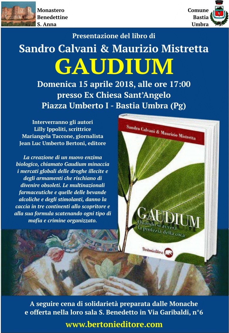 BASTIA UMBRA – Sarà presentato domenica 15 aprile, alle ore 17.00, il libro di Sandro Galvani e Maurizio Mistretta “Gaudium”, presso l’Auditorium S. Angelo, in Piazza Umberto I°. Oltre agli autori, saranno presenti la scrittrice Lilly Ippoliti, la giornalista Mariangela Taccone e l’editore Jean Luc Umberto Bertoni.