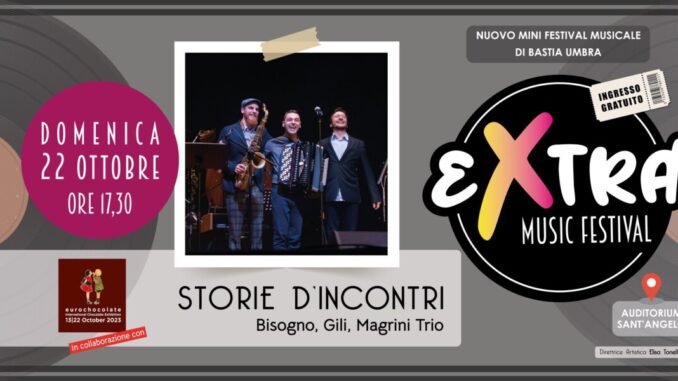 Extra Music Festival a Bastia Umbra. Storie d’incontri. Domenica 22 ottobre il primo concerto con il Trio, Lorenzo Bisogno al sassofono tenore, Federico Gili alla fisarmonica e Manuel Magrini al pianoforte.