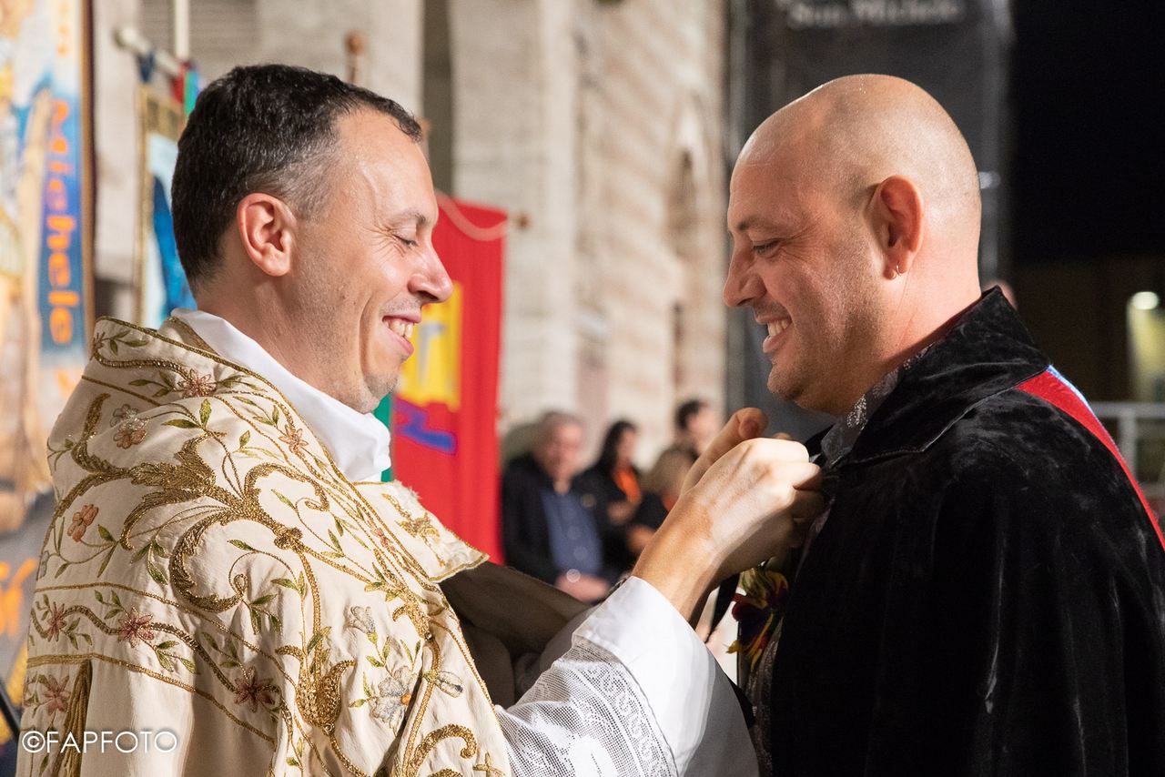 Il secondo anno da capitano è filato tutto più liscio, con meno ansie e paure. Consapevolezze acquisite soprattutto grazie alla collaborazione delle persone che ho avuto al mio fianco. Ognuna in grado di svolgere la propria mansione in perfetta autonomia, evidenziando il proprio talento. Oggi è il giorno più importante e sono molto orgoglioso di rappresentare questo splendido gruppo. Porteremo in piazza tutto quello che SIAMO: da solo non sono nessuno, insieme SIAMO UN RIONE. Sempre forza Sant’Angelo!”