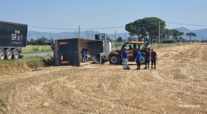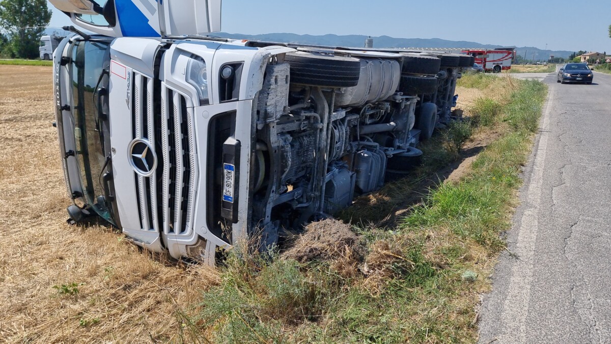 Autista ha fatto tutto da solo, autoarticolato si ribalta lungo la Torgianese
