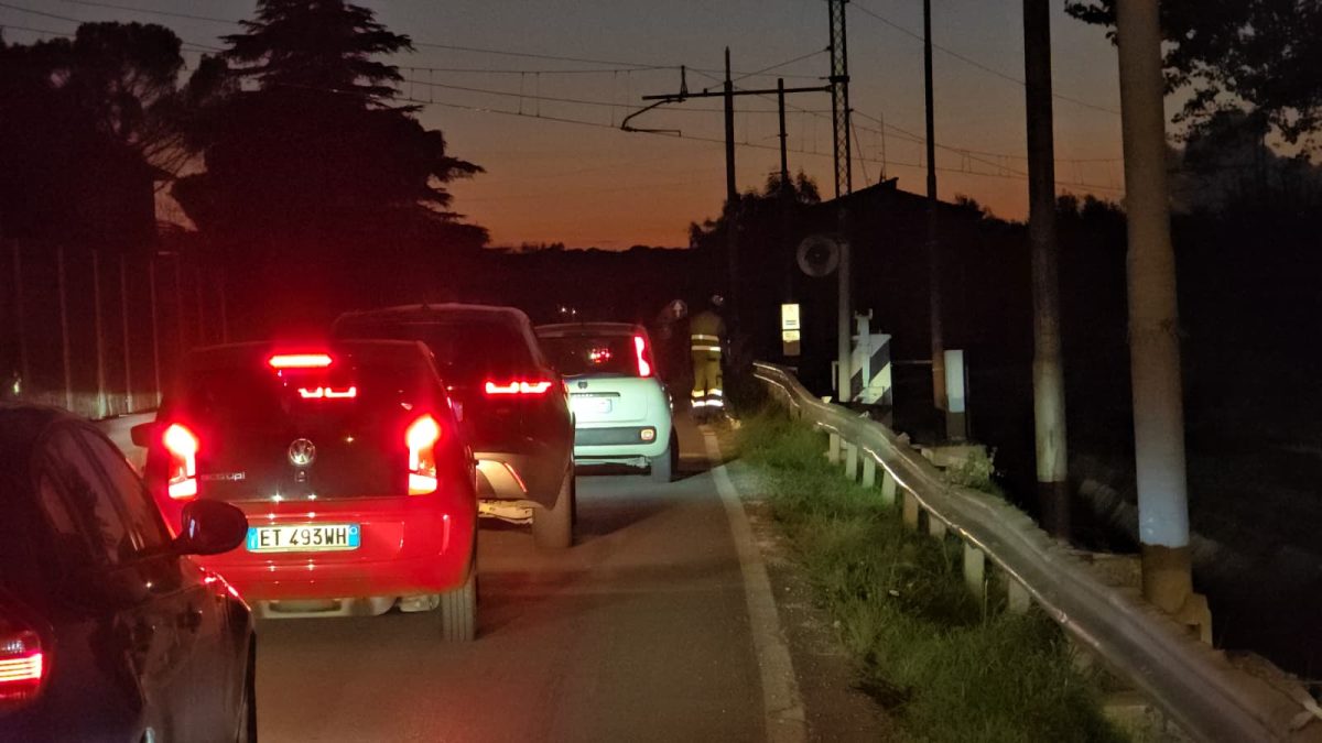 Per ragioni di sicurezza, i treni in transito hanno dovuto procedere a velocità ridotta. In corrispondenza del passaggio a livello, il transito ferroviario è stato regolato con una barriera mobile temporanea che ha richiesto l’abbassamento manuale a ogni passaggio. Tale misura, seppure indispensabile, ha determinato rallentamenti e code lungo la statale, con automobilisti costretti ad attese prolungate.