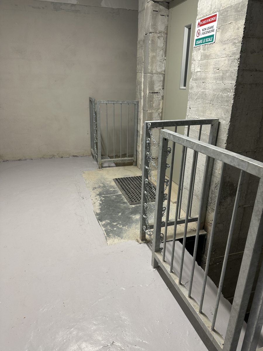 Sul fronte della sicurezza esterna, la denuncia segnala che le porte di emergenza non si chiudono correttamente e possono essere facilmente aperte dall’esterno, compromettendo la funzione di protezione dell’edificio. Il parcheggio coperto, destinato al personale, è descritto come abbandonato, sporco e privo di manutenzione, con infiltrazioni d’acqua e rifiuti accumulati.