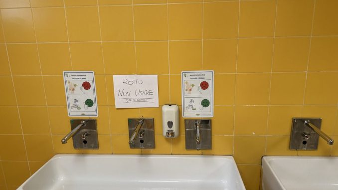 Da mesi, si legge nella segnalazione, i bagni dell’edificio presentano perdite d’acqua e allagamenti frequenti, dovuti a rubinetti difettosi. Gli interventi di riparazione, quando avvengono, richiedono diversi giorni, costringendo studenti e insegnanti a utilizzare servizi igienici in condizioni precarie e non conformi agli standard minimi di igiene.