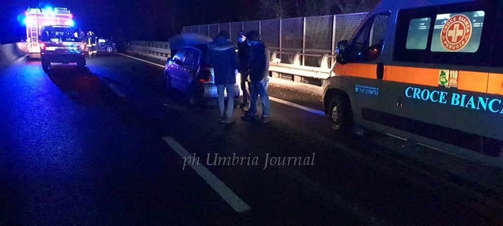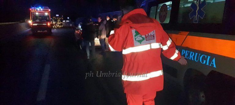 Due incidenti stradali sono avvenuti nella serata di giovedì sulla 75 Centrale Umbra, all’altezza dell’uscita di Umbria Fiere a Bastia Umbra, a pochi metri l’uno distante dall’altro. Nel primo sono rimaste coinvolte una Volkswagen Tiguan e una Classe A Mercedes. Nel secondo è rimasta coinvolta una Audi e una Volkswagen Polo. Per cause in corso di accertamento da parte della polizia stradale sembrerebbe che la Tiguan abbia avuto un incidente autonomo, la seconda auto dietro si sarebbe fermata con le 4 frecce, ma nel frattempo da dietro sopraggiungevano le altre auto tamponandosi a catena. L’auto più distrutta è l’Audi. Sul posto l’ambulanza del 118 perché c’è qualche persona ferita trasportata in ospedale, i carabinieri per la viabilità, i vigili del fuoco e il personale Anas. Il tratto è impraticabile e la corsia è stata chiusa per rimuovere i mezzi incidentati.