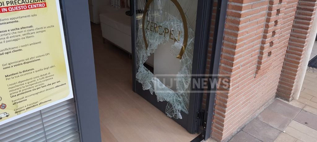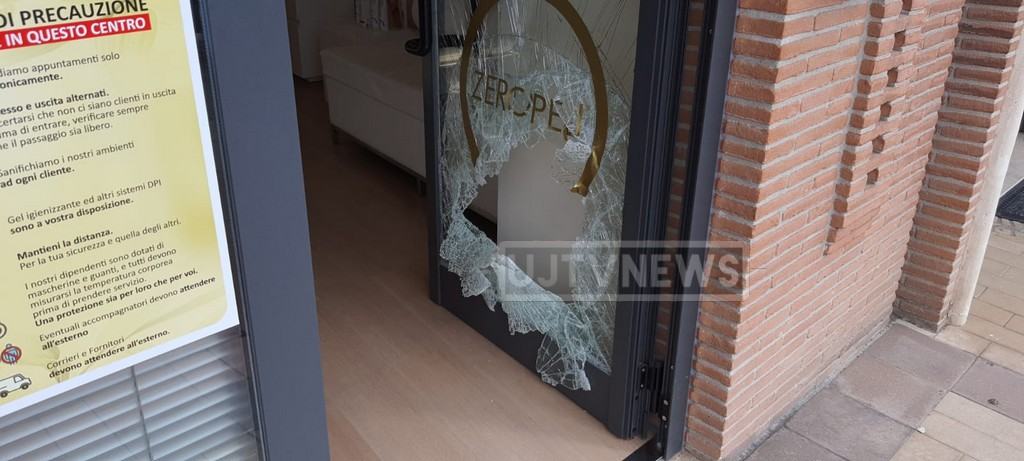 I malviventi, forse 2 o 3 persone, avrebbero utilizzato il coperchio del tombino stradale per spaccare il vetro. Prima hanno rotto quella nel negozio estetico e poi quelle della parafarmacia. Tracce di sangue sono state trovate in giro, sia sul piazzale esterno del palazzo, sia all’interno della parafarmacia. I danni, da come si può vedere dalle immagini, sono ingenti. La parafarmacia ha le due vetrate spaccate, mentre il negozio Zeropeli, oltre al vetro, ha anche la porta rotta dall’interno.