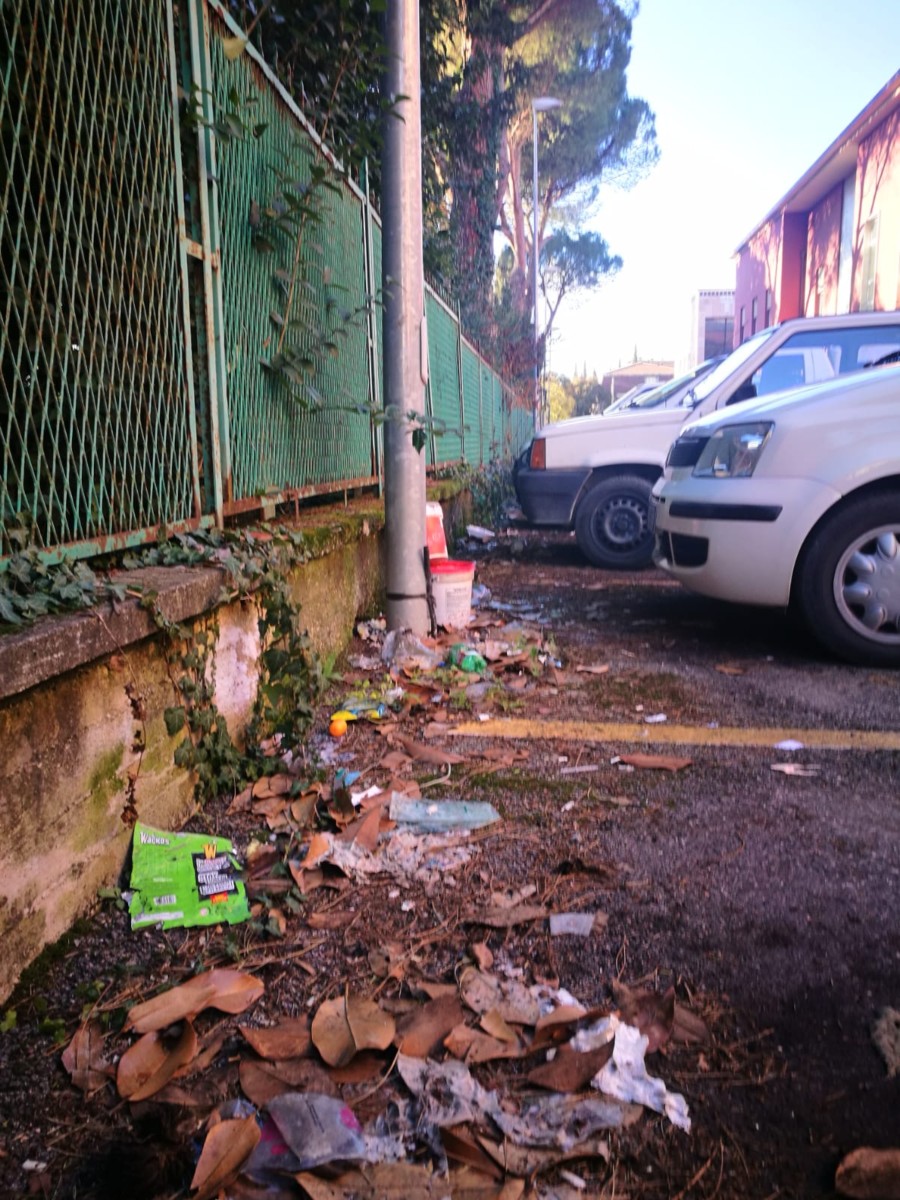 “Abbiamo monitorato la situazione per quasi un anno – afferma Federica Rascelli, responsabile cittadina di Casapound – con l’intento di capire con quale frequenza vengono effettuati gli interventi di pulizia e manutenzione dell’area. Ad eccezione del cortile interno al centro commerciale abbiamo constatato la presenza di rifiuti( cartacce, bottiglie, buste di medicinali scaduti, vetri rotti, fioriere usate come campane del vetro e addirittura complementi d’arredo ), mai rimossi durante tutto l’arco di tempo in cui abbiamo osservato e di cui riportiamo testimonianze fotografiche. In particolare ci preme rimarcare che tutta la segnaletica verticale presente nei parcheggi andrebbe rimessa in sicurezza. Piu’ volte, soprattutto in presenza di forte vento, I pali sono caduti senza fortunatamente colpire persone o vetture, in quanto fissati in modo precario al terreno”.