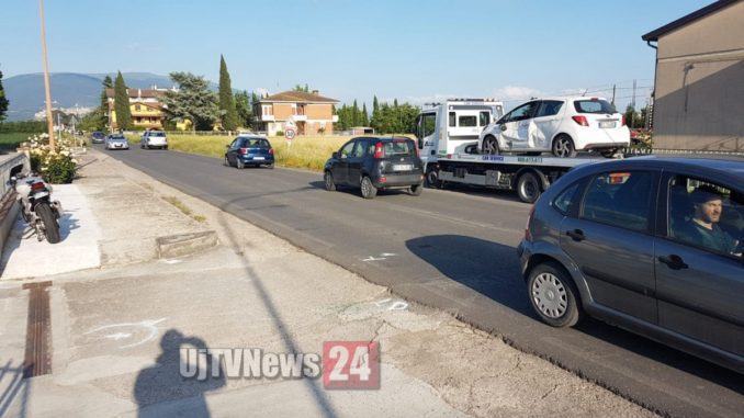 E’ di un ferito il bilancio dell’incidente stradale avvenuto oggi pomeriggio a Bastia Umbra, lungo la “147 Assisana”. Un’auto e una moto, per cause in corso di accertamento, si sono scontrate nei pressi del passaggio a livello di Ospedalicchio e in direzione Bastiola.