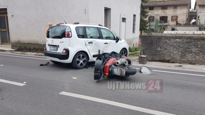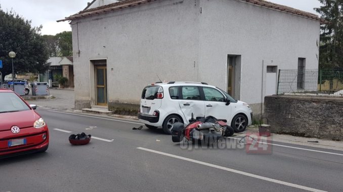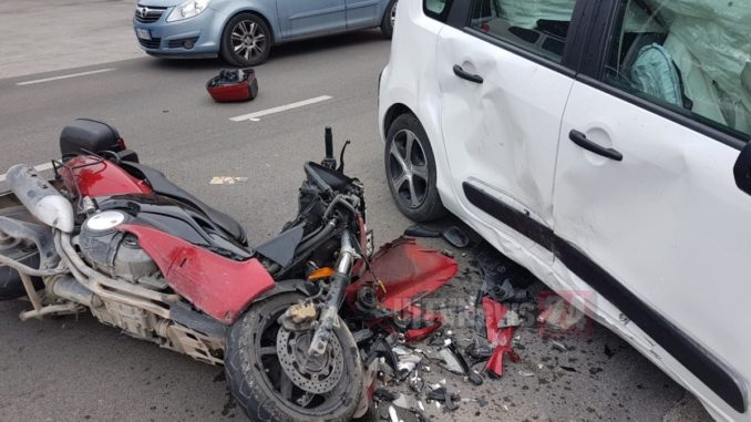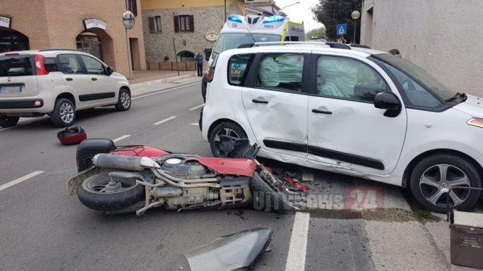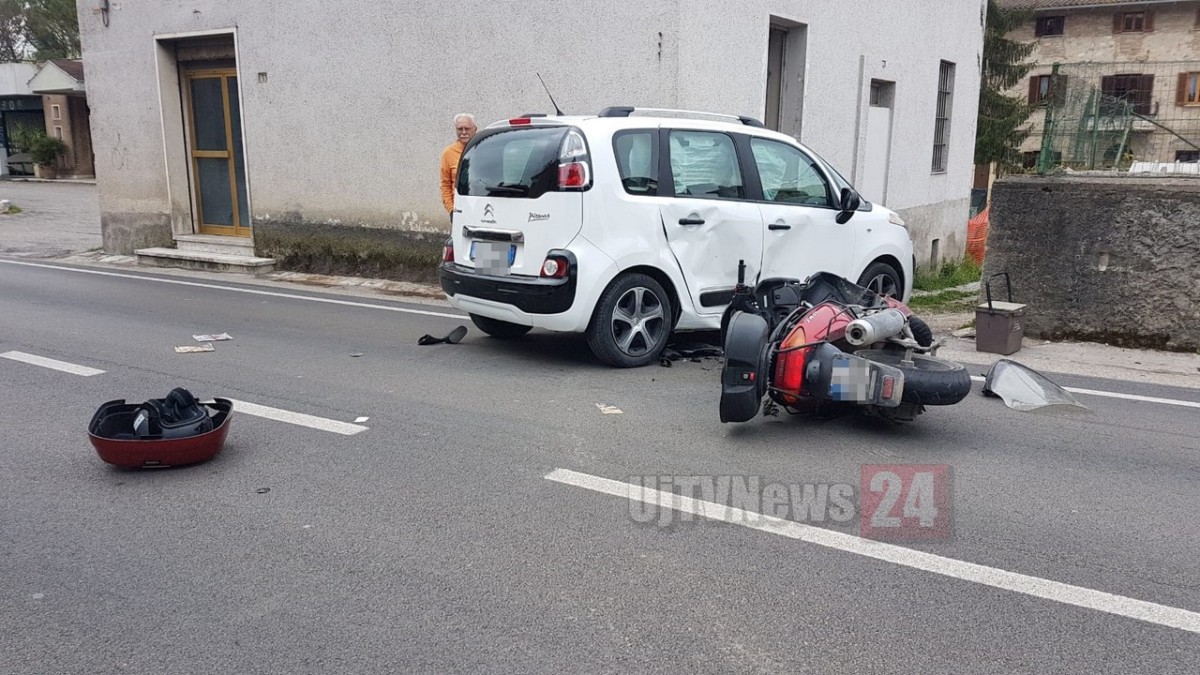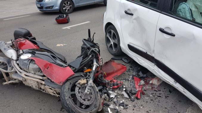Impatto inevitabile e l’uomo è piombato sull’asfalto, demolito il suo scooter e danni notevoli anche all’autovettura, cui si sono aperti tutti gli airbag laterali.