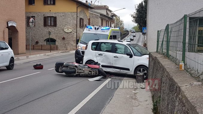 Un uomo di circa 40 anni è rimasto ferito, oggi poco prima delle 8, lungo viale del Popolo a Bastiola di Bastia Umbra, per altro a poca distanza da dove si è verificato l’incidente di cui parliamo nelle nostre pagine. Da una prima ricostruzione dei fatti, ma la dinamica è al vaglio della Polizia locale al seguito del maggiore Carla Menghella, pare che l’uomo che viaggiava in sella ad uno scooter abbia centrato in pieno una Citroen C3 Picasso che gli ha improvvisamente sbarrato la strada.