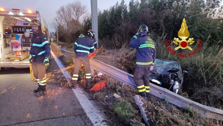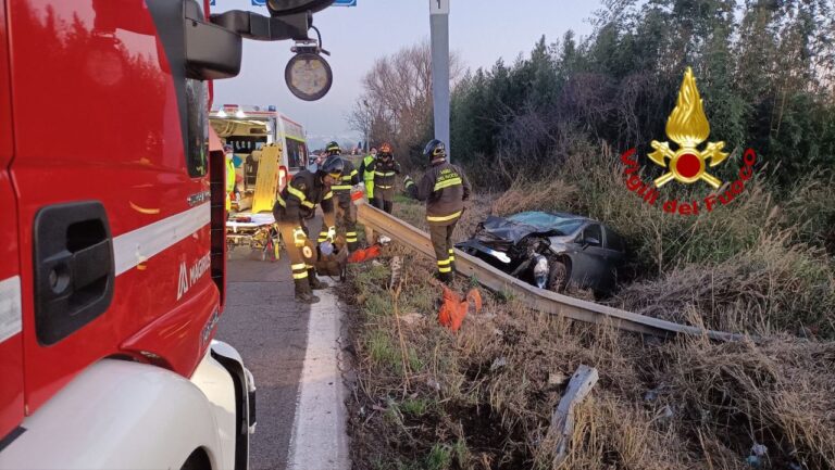 Con l’auto ha letteralmente saltato i guardrail ed è finito nel fossato. Un automobilista, a bordo di una utilitaria, nel pomeriggio di oggi si è reso protagonista di un incidente stradale sulla strada Statale 75 “Centrale umbra” all’altezza del km 1, all’altezza di Ospedalicchio di Bastia Umbria, in direzione Foligno. L’uomo è stato estratto dei Vigili del fuoco di Perugia che sono intervenuti usando anche un frullino elettrico per tagliare la barriera metallica e le lamiere dell’auto. Sul posto la polizia stradale e il personale sanitario del 118. Lievi ferite per il conducente.
