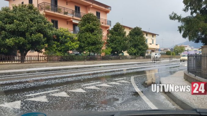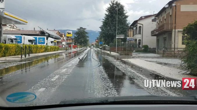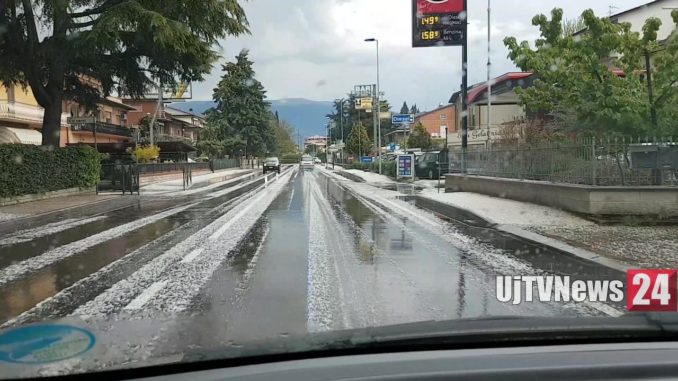 Attimo di tregua all’ingresso di Bastia Umbra e poi l’inferno. Due o tre tuoni da togliere il fiato e poi giù una grandinata, come non si vedeva da un po’.