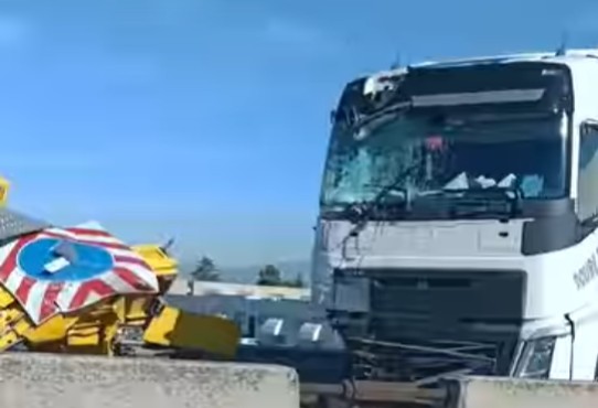 Mezzo pesante colpisce freccia dei lavori in corso, tutto bloccato
