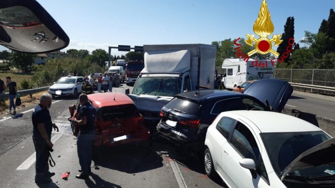 Tamponamento a catena sulla 75 Centrale Umbra, 6 mezzi coinvolti, 2 feriti