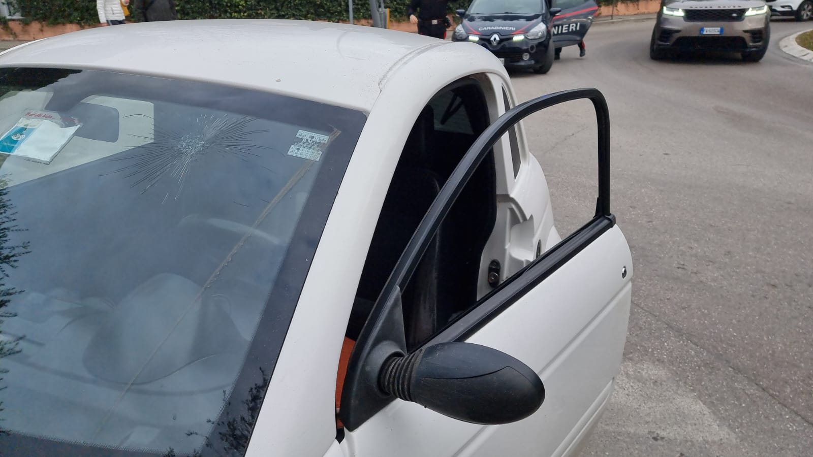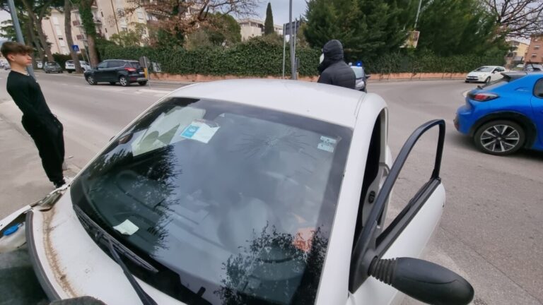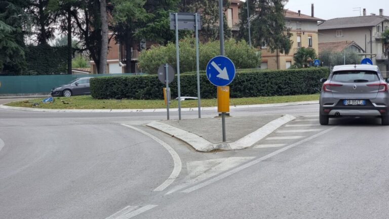 L’auto bianca guidata da una signora del ’59 avrebbe tamponato un’auto simile di colore grigio (alla cui guida c’era una giovane donna). Nell’impatto è andata a finire contro un muretto di recinzione di un’abitazione. Ma prima è salita sull’aiuola della rotatoria, perdendo un pezzo della vettura e buttando giù un segnale stradale.