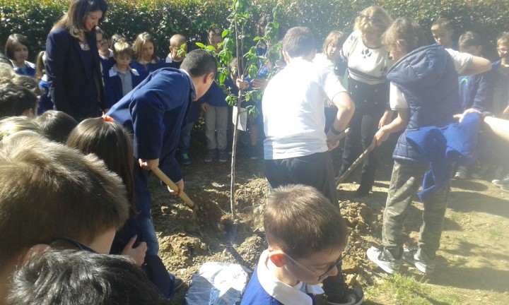 Anche alla scuola primaria della frazione di Ospedalicchio si è celebrata la Giornata Mondiale della Terra. Gli allievi di tutte le classi, con l’entusiasmo proprio della loro età e con la gioia che sanno riservare alle novità, hanno accolto la proposta di piantare nel giardino della loro scuola un albero da frutto, cortesemente donato da Leroy Merlin.