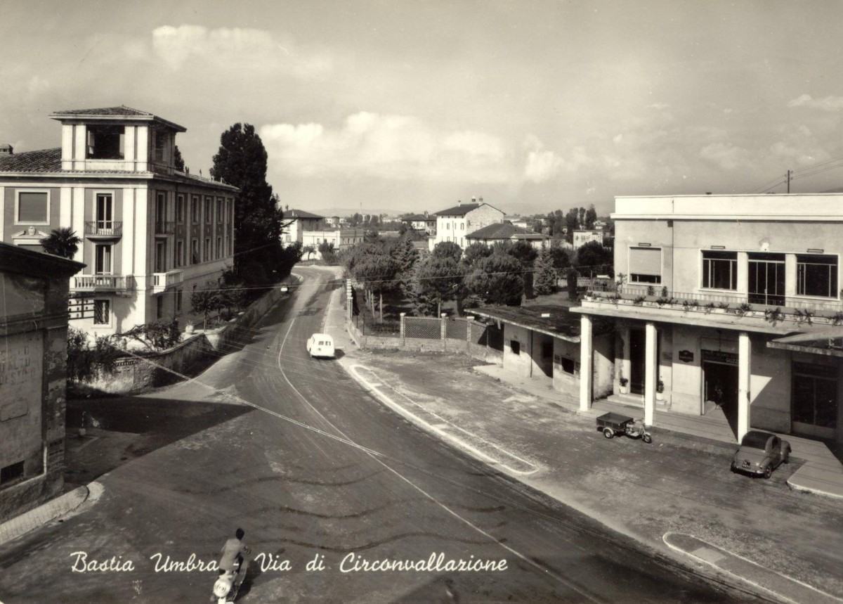 “Provenienti da Bastia Umbra”, come amavano rispondere alla solita capziosa domanda (“Da dove vieni?”). Ciò premesso, per inquadrare bene la situazione non posso prescindere dalla topografia dei vicoli, e allora, considerando piazza Mazzini al centro di due quadrilateri, discendiamo via Garibaldi che dalla piazza conduce verso il fiume, e così facendo ne descriviamo uno, mentre l’altro, che viene recinto da via Roma, via Piave e via Andrea dell’Isola, sbocca in piazza Cavour, attigua alla piazza centrale e al municipio.