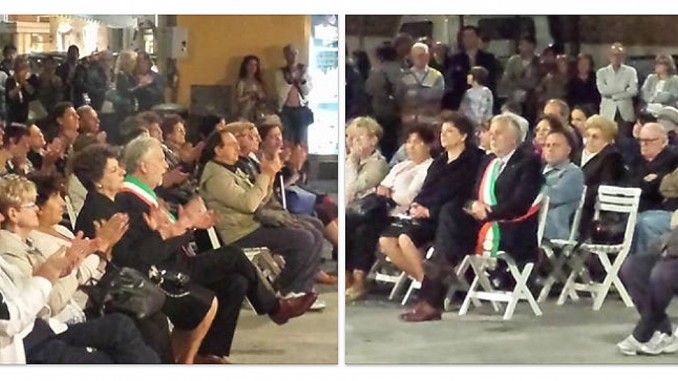 Appunto, in branco di fronte alla sede municipale! A criticare il sindaco uscente, ma non ancora uscito e quindi con la fascia!