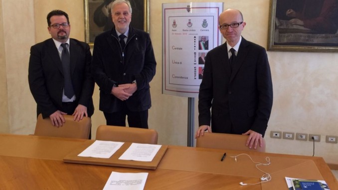 I Sindaci di Assisi Claudio Ricci, Bastia Umbra Stefano Ansideri e Cannara Fabrizio Gareggia hanno firmato in mattinata (ringraziando per la collaborazione tecnica l’ing. capo Stefano Nodessi Proietti), in linea con l’attuale quadro normativo, il protocollo per la costituzione della Centrale Unica di Committenza “ABC” (esperienza prototipo in Umbria) al fine di ottimizzare (creando risparmi), acquisti e gestione di servizi comunali di qualità per i cittadini.