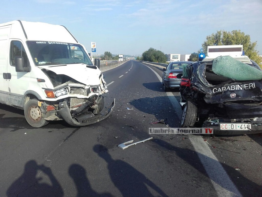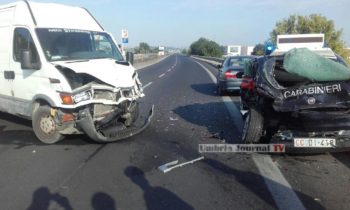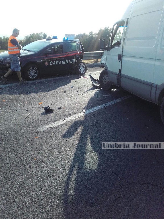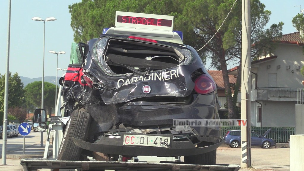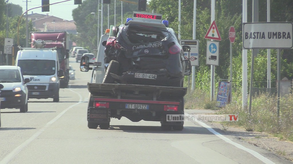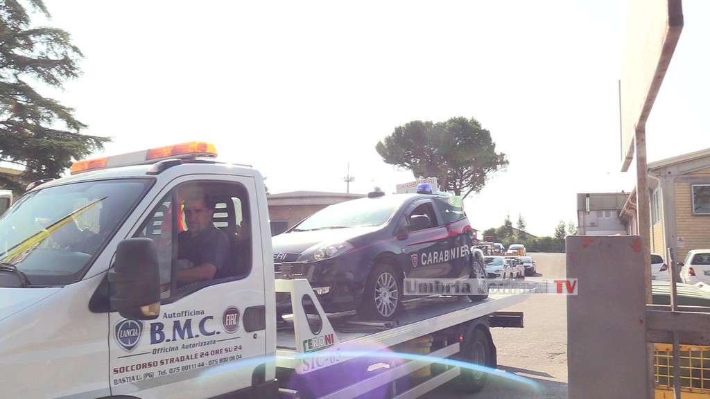 BASTIA UMBRA – Tragedia sfiorata, questa mattina poco dopo le 8 a Bastia Umbra, lungo la stradale statale 75 Centrale Umbra all’altezza dell’area di servizio Q8 in direzione Perugia. Una pattuglia dei Carabinieri della stazione di Santa Maria degli Angeli, che stava facendo servizio di viabilità per un’auto in panne, è stata tamponata violentemente da un furgone Fiat Ducato di 35 quintali. Per fortuna i due militari erano all’esterno della Fiat Bravo e non si sono fatti nulla. Tanta paura, ma niente di più, almeno stando alle prime dichiarazioni.
