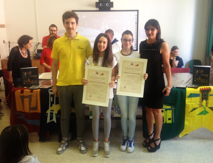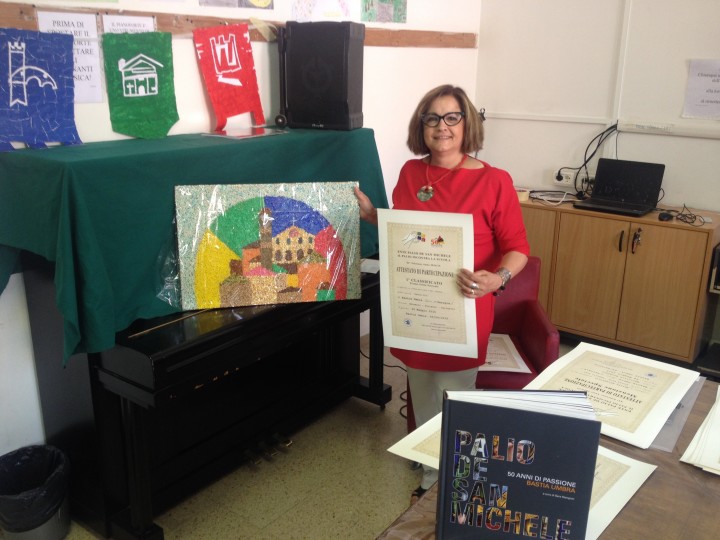 La classe 4° della Scuola Primaria XXV Aprile di Bastia Umbra si è aggiudicata la 1° SEZIONE. Alla sezione D di anni 5 della Scuola d’Infanzia “Umberto Fifi” di Bastia Umbra la menzione speciale. Benedetta Storti ed Elena Lilli della classe II° D della Scuola Secondaria di I° “Colomba Antonietti” di Bastia Umbra si sono aggiudicate il MINIPALIO 2015. Venerdì 19 Giugno presso il Miglio Sport Village di Bastia Umbra avranno luogo le finali del TORNEO DI CALCIO A 5 TRA I RIONI BASTIA UMBRA – Venerdì 6 giugno 2015 presso l’Aula Magna della Scuola Media di Bastia Umbra si sono svolte le premiazioni de “IL PALIO INCONTRA LE SCUOLE 2015”. Grande partecipazione ed entusiasmo di tutte le scuole coinvolte in una giornata che ha visto anche la presenza del Sindaco di Bastia Umbra Stefano Ansideri. Oltre i tre vincitori delle varie sezioni, sono state assegnate ben 52 menzioni speciali e attestati di partecipazione. 1° SEZIONE: Scuola Primaria / classi III-IV-V La Commissione Tecnica ha assegnato il primo premio alla classe IV° Scuola Primaria XXV Aprile della docente Nadia Giugliarelli. Gli alunni premiati: Giuliana Bevilacqua, Lorenzo Covarelli, Mariagiulia Gubbiotti, Laura Guarino, Emanuele Lauria, Safaa Maaiti, Anna Marchi, Alessia Marconi, Daniele Marconi, Mattia Mastroianni, Giulia Santucci, Giovanni Scarano, Gianmarco Tardioli, Elena Tozzi, Matteo Vacca. Motivazione: “L’elaborato rappresenta in maniera superiore il significato di eggregore: ovvero comunione di intenti e forte coesione per il raggiungimento di un unico obiettivo come scopo di vita sociale.