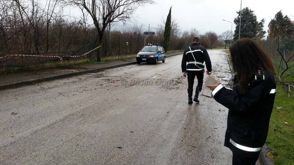 Sul posto gli uomini della polizia municipale con il Maggiore Carla Menghella. Al momento non si lamentano danni a persone.