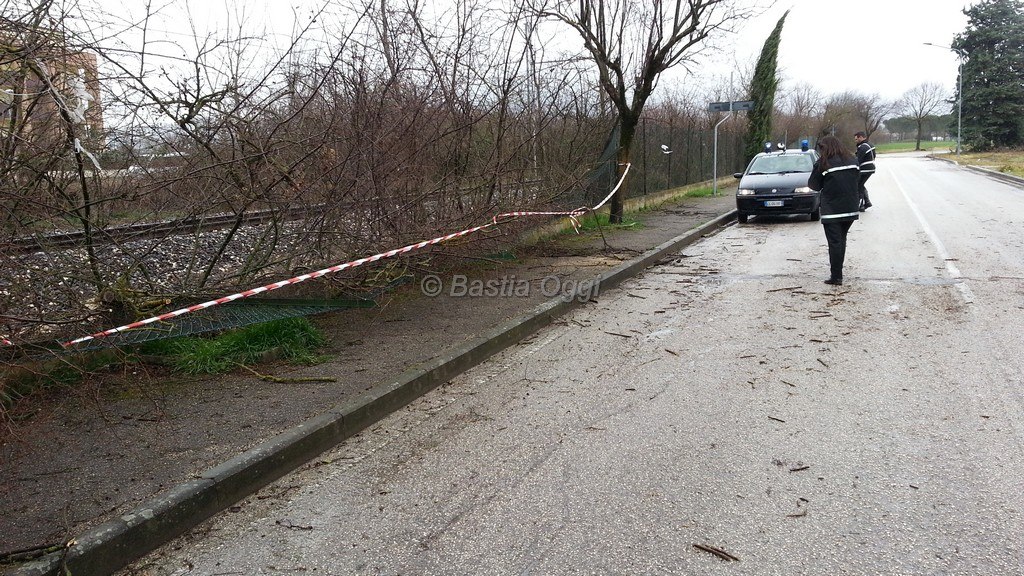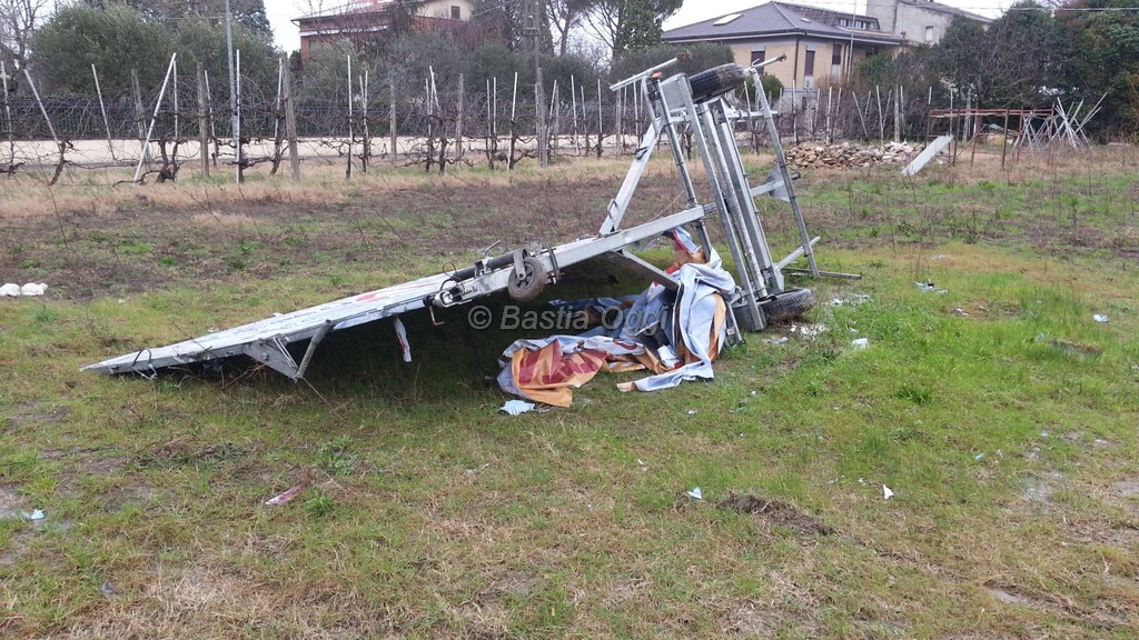 Bastia, vento furioso e rami spezzati, capovolto carrello pubblicitario [GUARDA LE FOTO]