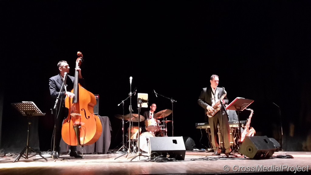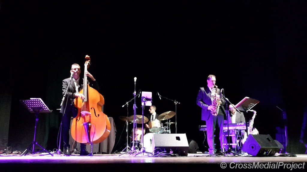 [divider]I Pyramid Jazz Quintet hanno presentato un repertorio vasto e decisamente versatile, spaziando dal Jazz puro, al Latin, al Jive, alle Ballad americane, fino ad arrivare a brani famosi di musica italiana rivisti e riarrangiati, andando così a soddisfare i gusti di un pubblico variegato. I Pyramid si sono divisi il concerto con il duo “voicebass” contrabbasso e voce ispirato dal famoso duo “musica nuda”.