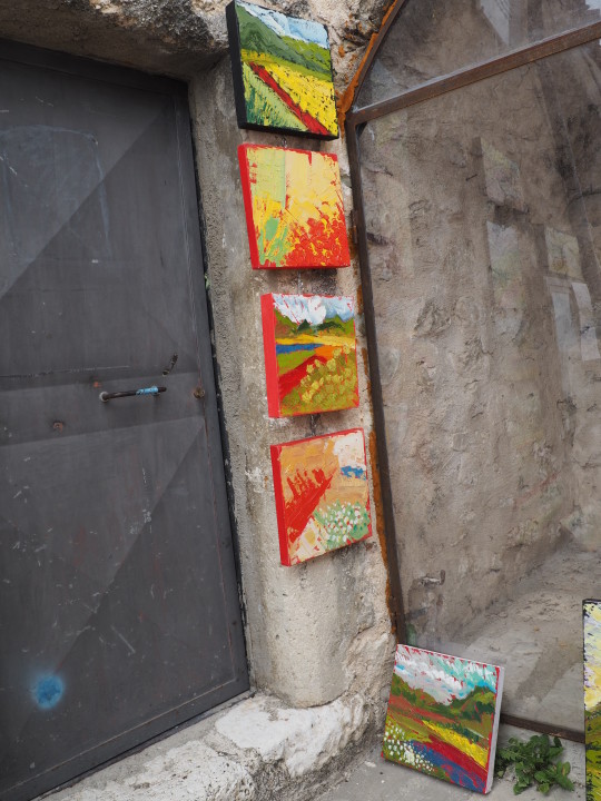 Un gran numero di opere prevalentemente dedicate alla “fiorita” che in questi giorni è al massimo della sua bellezza. Un ambiente connotato da forte energia che dal colore passa alle tele con la spatola di Rosella. In diretta ogni giorno l’artista comunica con i turisti attraverso le proprie performance, illuminando di colore le materiche opere che prendono vita in “ diretta”.