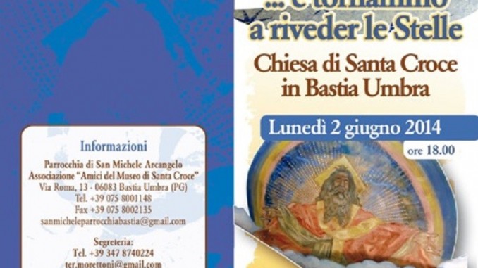 Il titolo scelto per l’evento (…e tornammo a riveder le Stelle) ricorda l’ultimo verso dell’Inferno della Divina Commedia, dove il Sommo Poeta afferma: E quindi uscimmo a riveder le stelle (Inferno XXXIV, 139). Come Dante e Virgilio, dopo aver essere passati dall’Inferno alla spiaggia dell’Antipurgatorio, alla fine contemplano le stelle nel cielo notturno dell’altro emisfero, allo stesso modo, dopo oltre quaranta anni, i bastioli potranno rivedere, ed altri vedere per la prima volta, lo splendido cielo stellato, che circonda le figure sacre, concepito dal Bruschi, che era stato coperto con la ristrutturazione della chiesa negli anni Settanta.