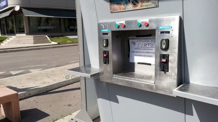 Distrutta colonnina dell’acqua per pochi spiccioli in Piazza del Mercato – Dopo Villa Pitignano e Santa Maria degli Angeli, l’assalto a i distributori di erogazione di acqua pubblica, è toccato anche in Piazza del Mercato, a Bastia Umbra. E’ successo tutto nel giro di poche sere, il 16 agosto a Villa Pitignano, il 17 a Santa Maria degli Angeli e il 18 a Bastia Umbra.