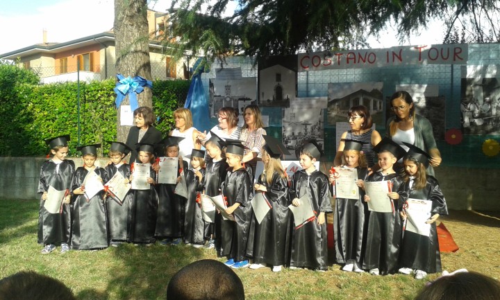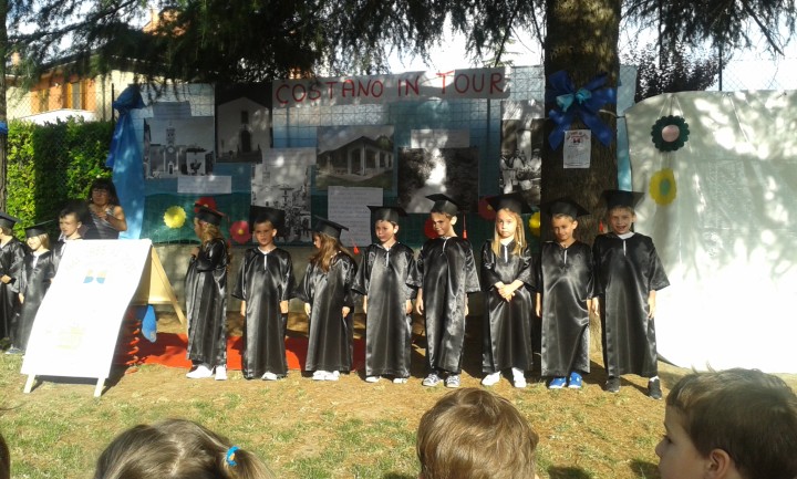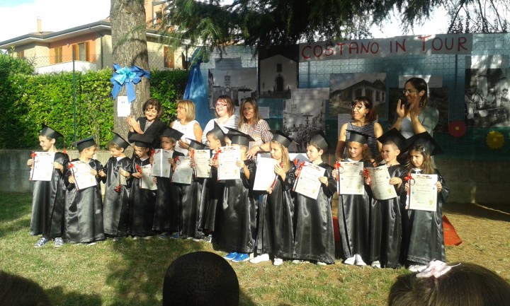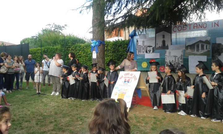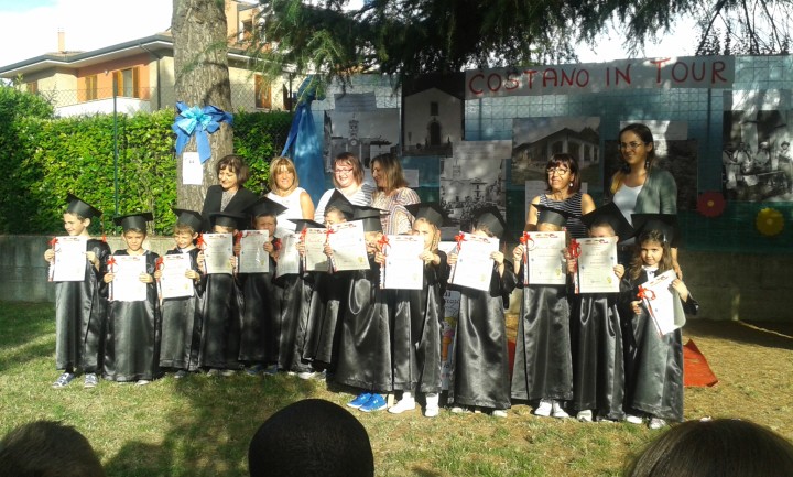 Protagonisti del pomeriggio i bambini, che si sono esibiti in un breve, ma intenso ed ordinato, intrattenimento canoro, tutto incentrato sulla loro scuola e sul loro paese, Costano. Toccante l’Inno di Mameli cantato con commovente passione dai bambini con l’accompagnamento della Banda Musicale. Infine la consegna dei “diplomi” ai bimbi che hanno terminato l’asilo. Per loro inizia un nuovo ciclo scolastico nella scuola primaria: lo hanno festeggiato cantando con orgoglio “siamo remigini”. Intervenuti per un saluto anche il Sindaco Stefano Ansideri e gli assessori Catia Degli Esposti e Claudia Lucia.