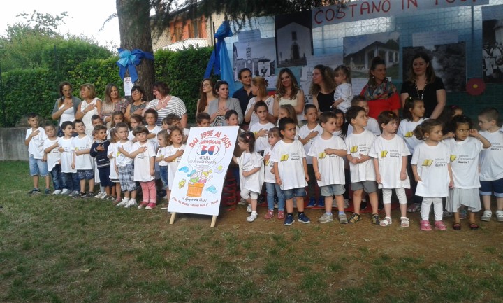 Nel giardino della scuola d’infanzia Giovanni Paolo II di Costano si sono festeggiati i 30 anni da quando l’allora scuola materna di Costano è divenuta scuola statale. Un paese in festa attorno ai bambini, alle maestre ed ai genitori, con l’immancabile presenza della Banda musicale di Costano e con la consueta collaborazione del Gruppo Giovanile di Costano.