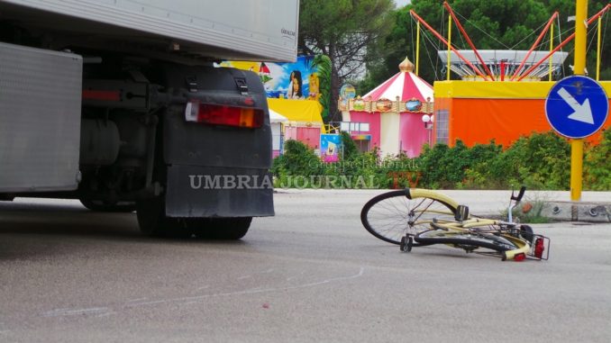 Il fatto si è verificato poco prima delle 10,30 all’incrocio situato proprio all’ingresso della città. Il mezzo pesante proveniva da via Gramsci e ha svoltato per andare verso Umbria Fiere. Quando è ripartito dallo stop del semaforo, svoltando in via del Lavoro, ha agganciato la bicicletta e l’ha scaraventata in mezzo al quadrivio. “L’ho visto volare per quattro o cinque metri”, dice un testimone.