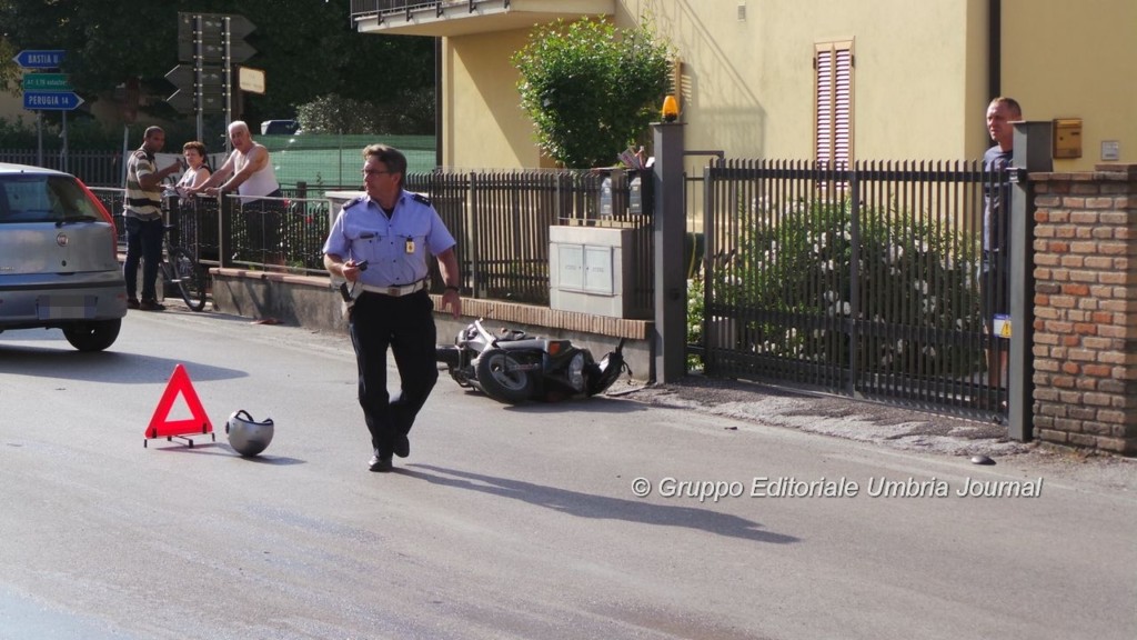Si è fermato sullo stop di via Tozzoli e si è immesso sulla Torgianese in direzione Bastia Umbra. Impatto inevitabile! Sul posto, mentre stavano montando di turno, si sono trovati a passare alcuni ufficiali della Polizia locale di Bastia Umbra, compreso il loro comandante, Maggiore Carla Menghella. Immediata la richiesta del 118 che è arrivato da Assisi. I sanitari, proprio a causa delle ferite e dei traumi riportati alla testa, hanno deciso di trasportare l’investito presso il pronto soccorso del Santa Maria della Misericordia di Perugia. Le sue condizioni, comunque, non desterebbero preoccupazioni.